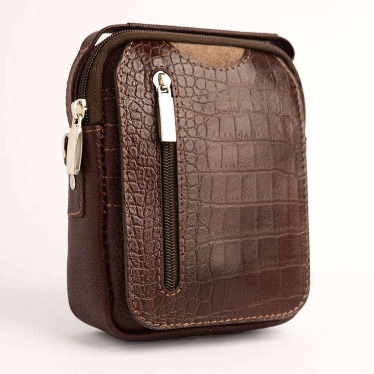 کیف دوشی چرم طبیعی سرخونه دار جلو زیپ